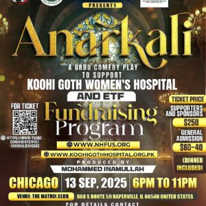 🎭 Chicago, Join Us for an Evening of Purpose and Laughter 🎭 NHF proudly presents Anarkali, an Urdu comedy play produced by Mohammed Inamullah, in…