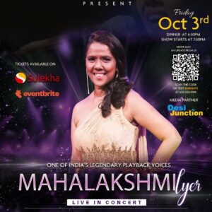 Mission Meghna & Dhrishti Present Mahalaxmi Iyer — Live in Concert | A Mission Meghna Fundraiser Friday, October 3rd | Dhrishti Theater @ The Matrix…