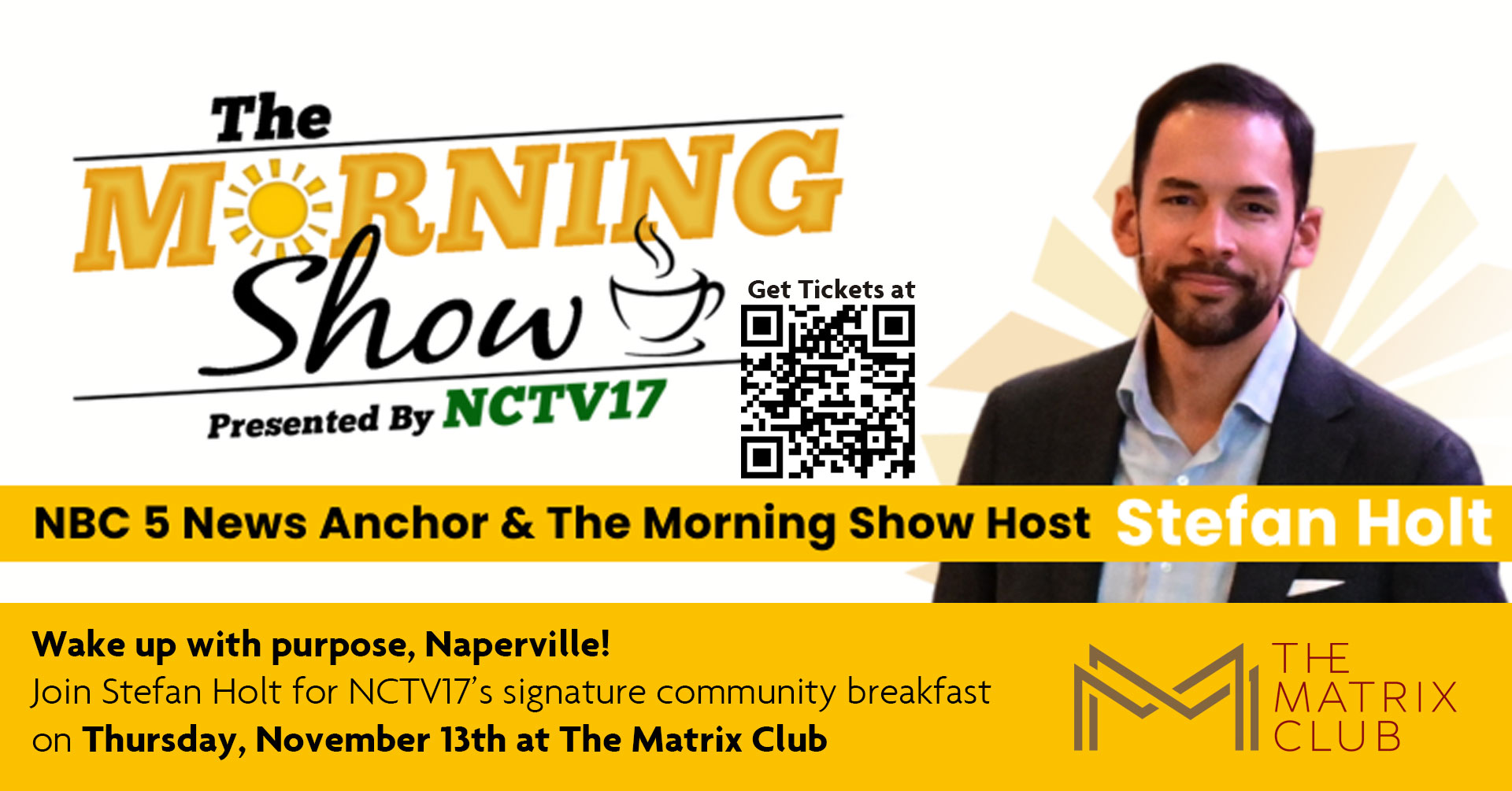 Join NBC 5 News Anchor and Naperville resident Stefan Holt as he hosts NCTV17’s annual FUNdraising breakfast, The Morning Show.