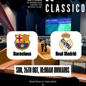 Sunday, October 26, 2025 | 10:00 AM onwards (CT)Venue: Meg’s Lounge @ The Matrix Club, Naperville Experience the thrill of football’s fiercest rivalry as Barcelona…