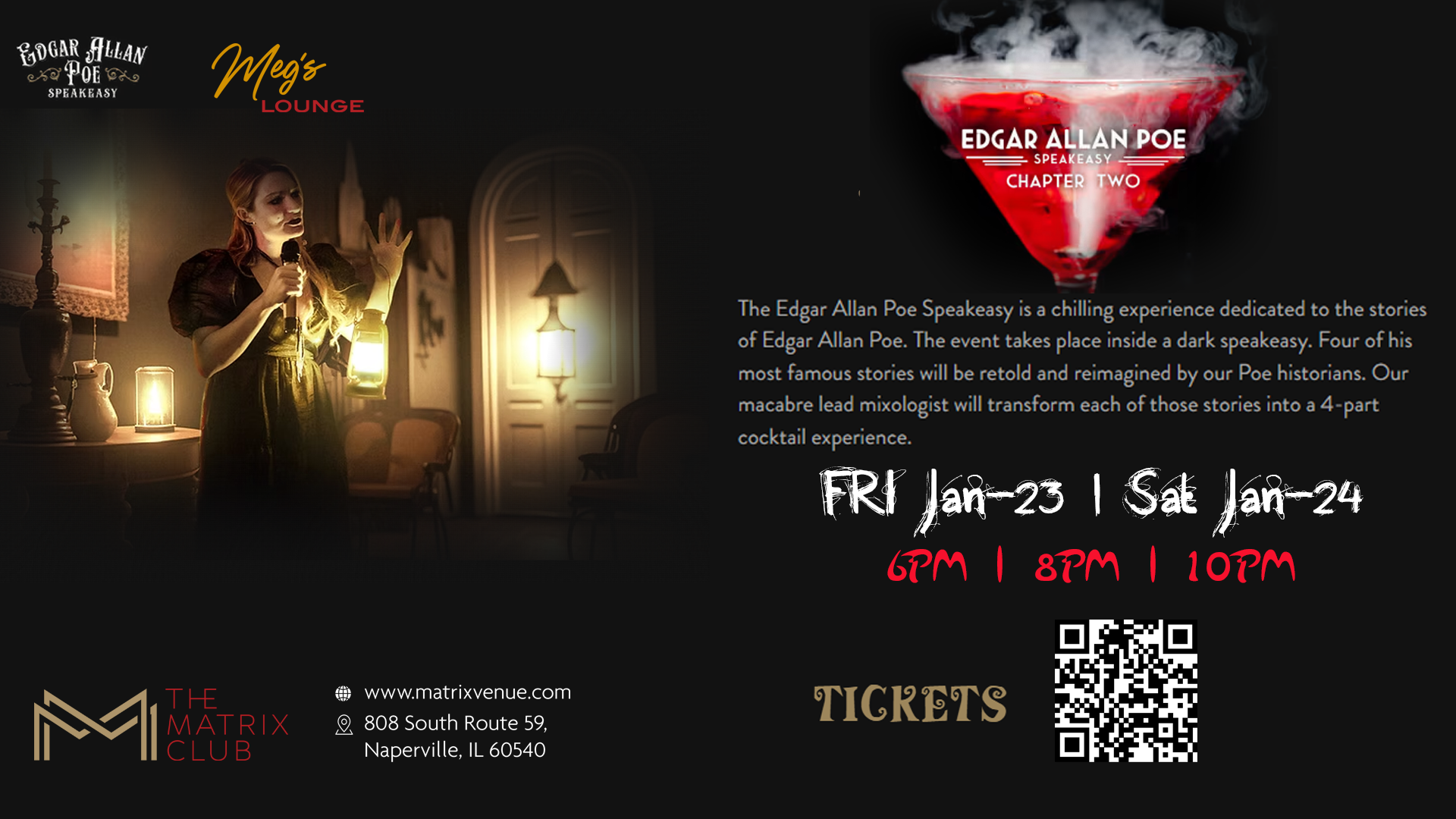 After the mesmerizing success of the Edgar Allan Poe Speakeasy, the doors have opened once more, inviting you to step deeper into the shadows of Poe’s most harrowing tales. Step into a night of literary horror as you explore the dark worlds of Edgar Allan Poe once more. Prepare for an immersive experience that will transport you into the chilling tales of The Cask of Amontillado, Annabel Lee, The Pit and the Pendulum, and The Fall of the House of Usher, each brought to life with eerie detail. As you delve into these chilling tales, savor four expertly crafted cocktails, each paired to enhance the haunting atmosphere of the story it accompanies. With every sip, feel the spine-tingling essence of Poe’s masterpieces seep into your soul. A night of gothic elegance and macabre delight awaits those brave enough to attend. Experience an even more chilling night of storytelling and spirits in this next chapter of the Speakeasy series in Naperville!