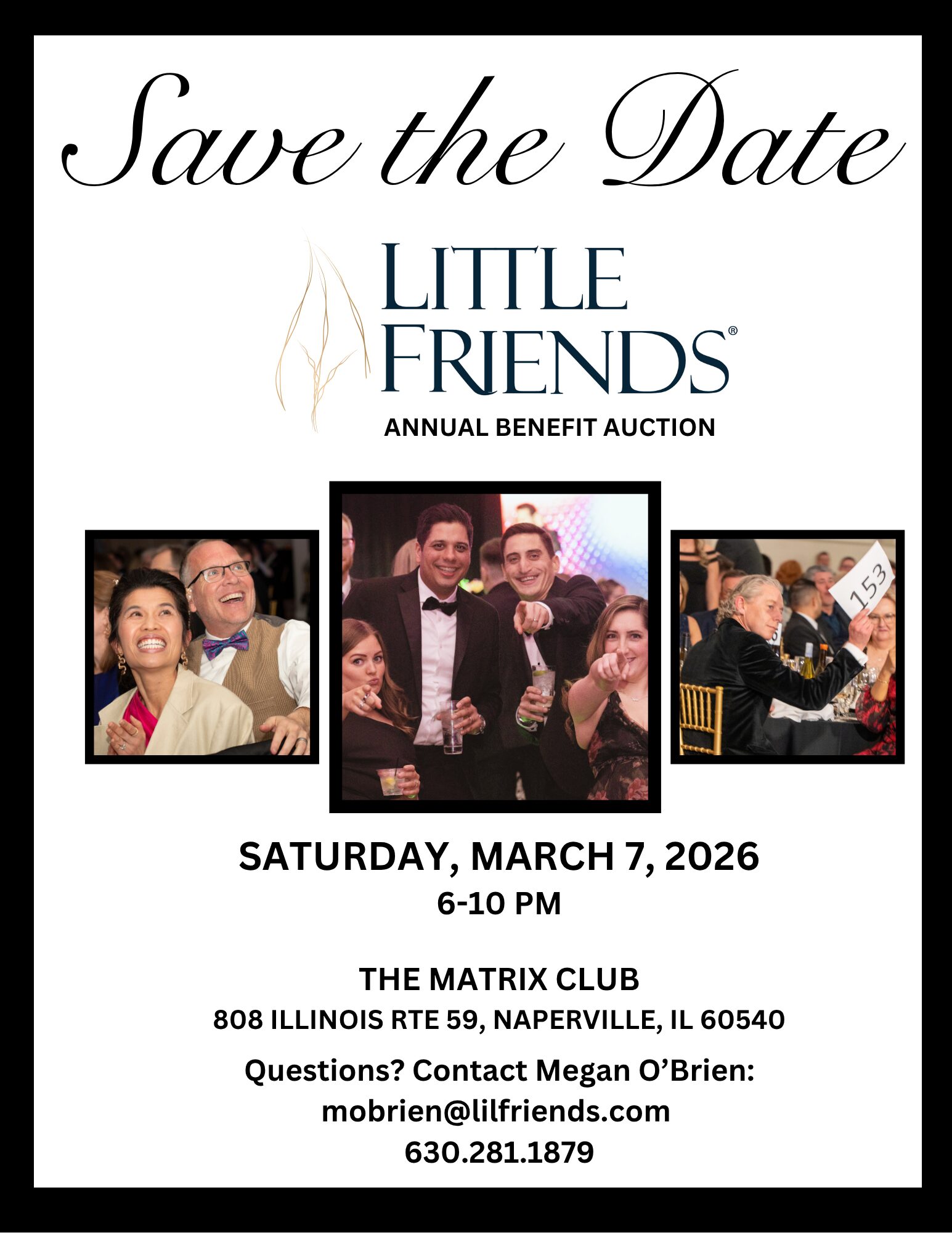 Celebrate an unforgettable evening of community, compassion, and commitment at the 49th Annual Little Friends Benefit Auction. This inspiring event brings together friends, advocates, and supporters to champion the mission of Little Friends—empowering individuals with autism, intellectual/developmental, and physical disabilities to lead meaningful, fulfilling lives.